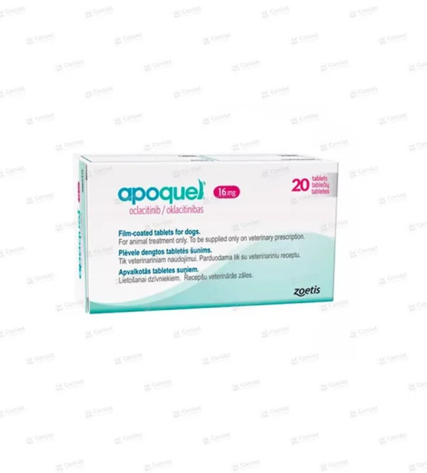 Cada comprimido contiene 16 mg de oclacitinib, un medicamento que actúa sobre los mediadores inflamatorios responsables de la picazón. Está diseñado para controlar la picazón asociada a alergias en perros y tratar afecciones dermatológicas como dermatitis atópica.
