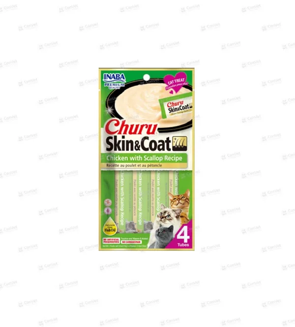 Snack cremoso de pollo y conchas de abanico para gatos.