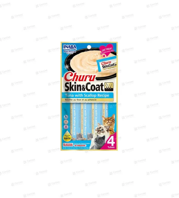 Contiene atún, conchas de abanico, agua, glicerina vegetal, taurina, ácidos grasos omega-3 y omega-6, vitaminas y minerales esenciales. Ayuda a mantener la salud de la piel y el pelaje, proporcionando nutrición adicional y sabor para tu gato.