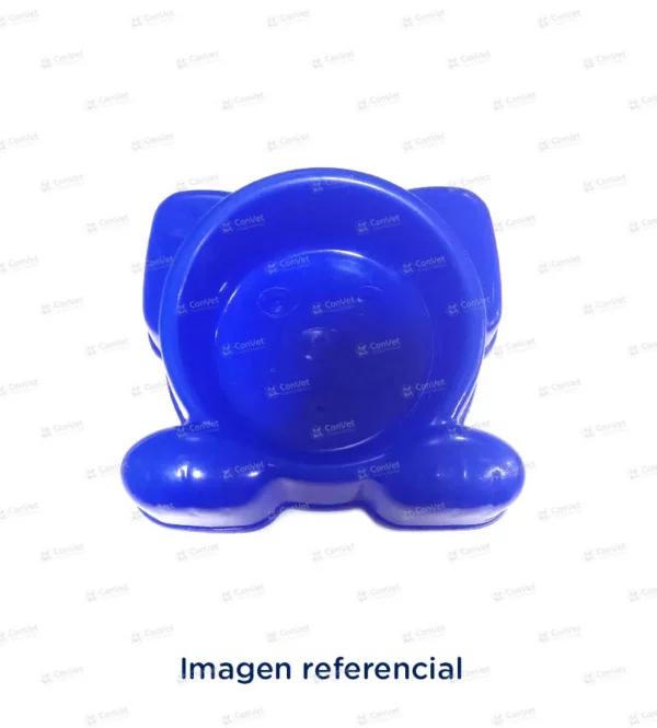 Recipiente de comida para mascotas con diseño de carita con patas. Material fácil de limpiar.